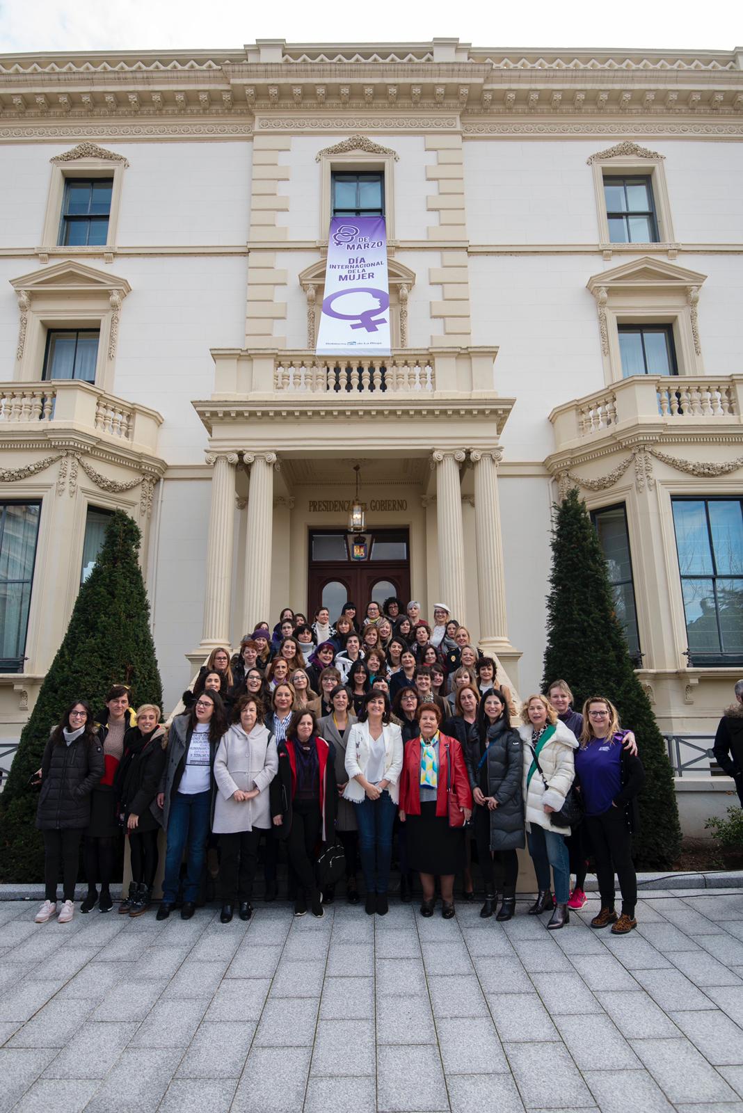 El Gobierno de La Rioja con motivo del Día Internacional de la Mujer ha reunido en el exterior del Palacio de Gobierno a mujeres de diferentes colectivos de la sociedad riojana para conmemorar este día mediante la lectura de un manifiesto.