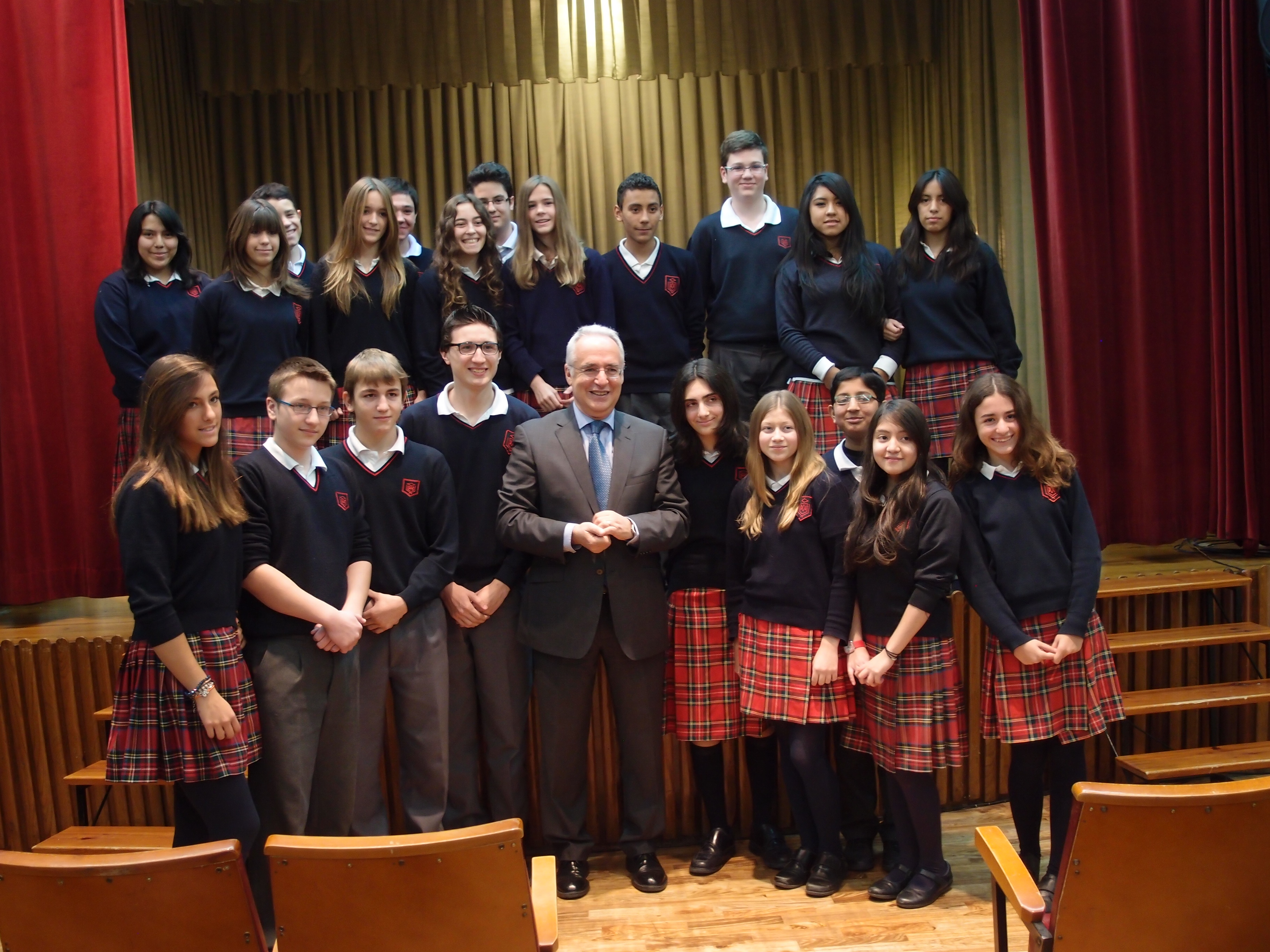 El Presidente posa junto a un grupo de alumnos