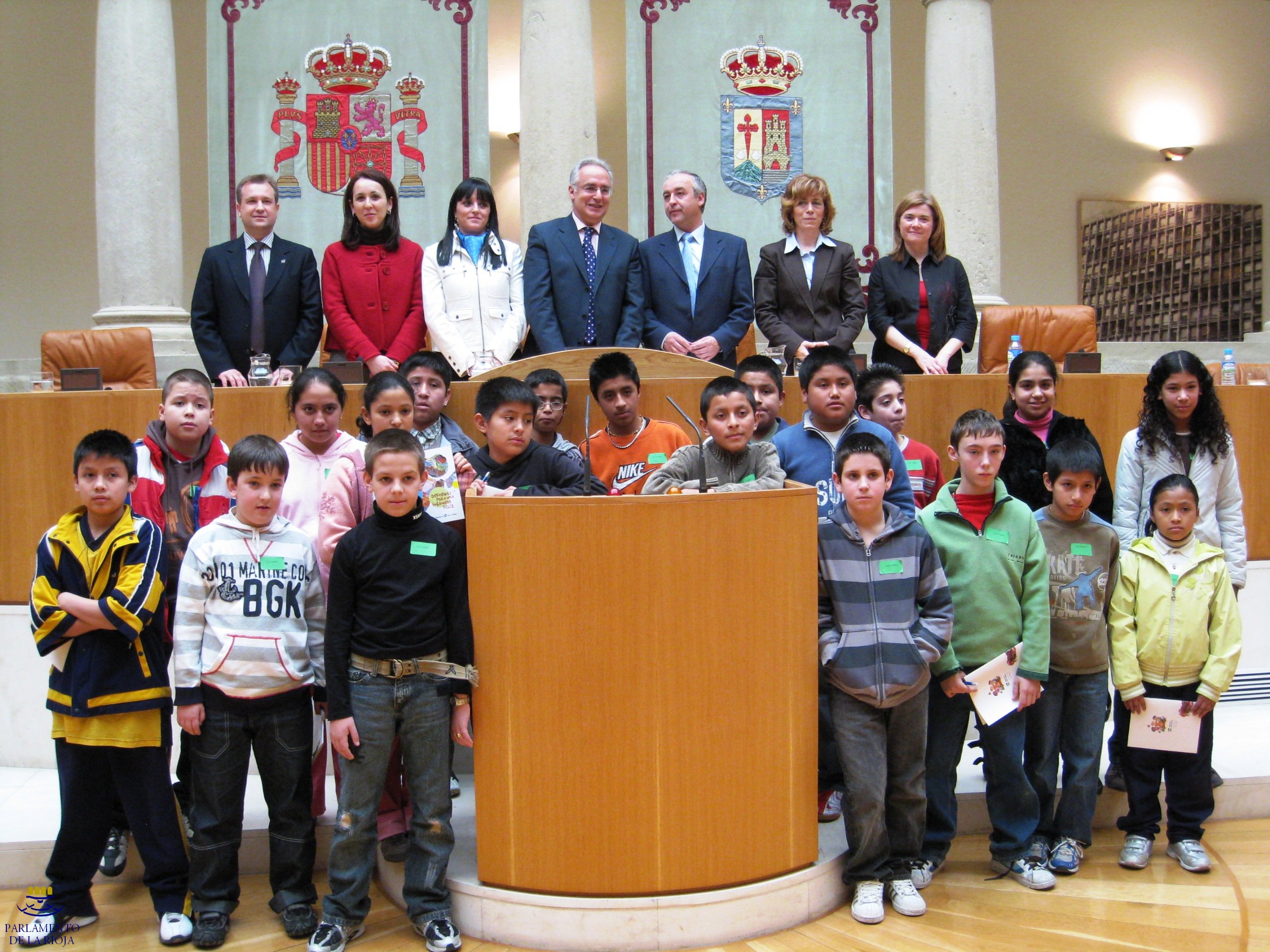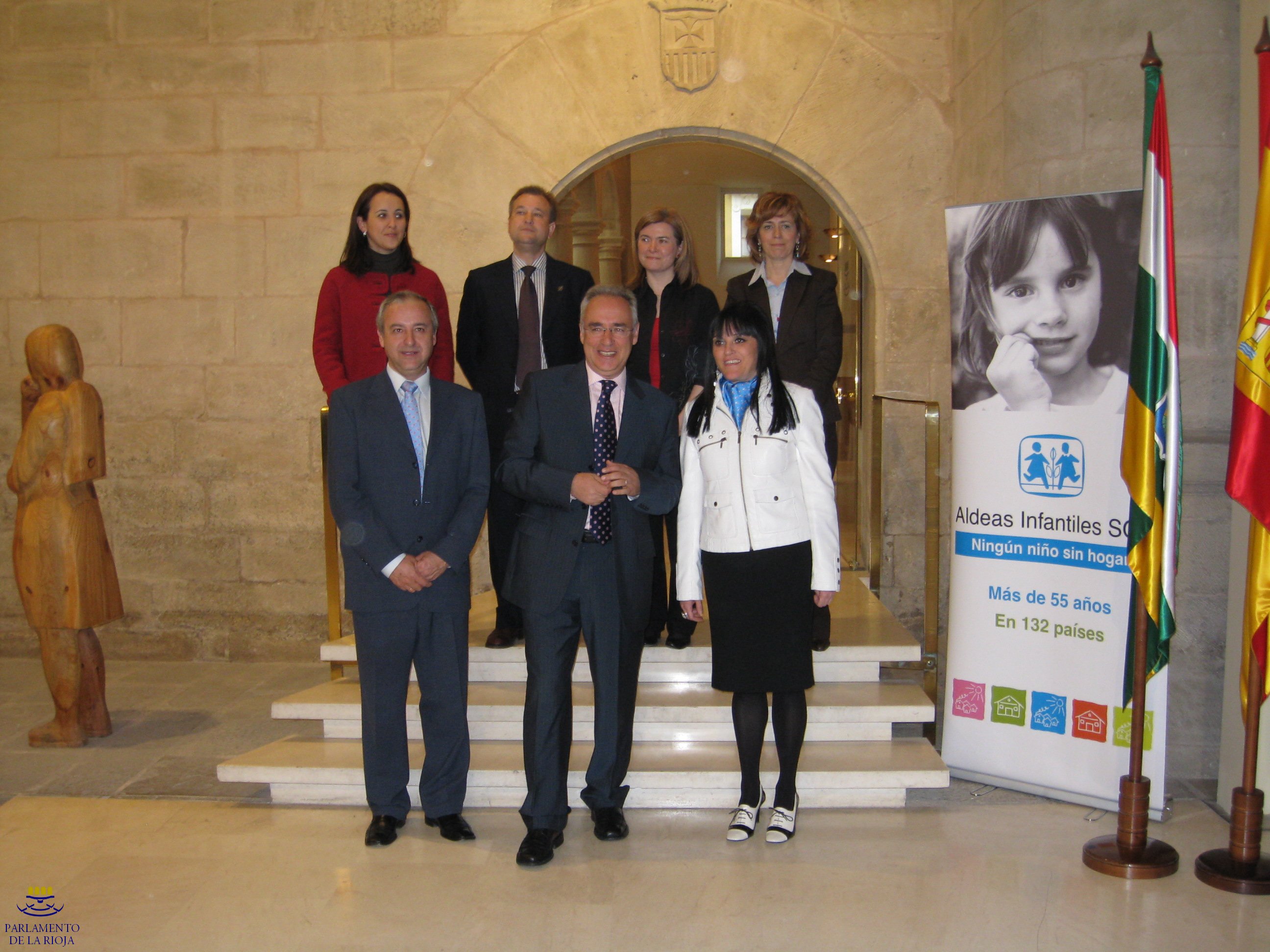 El acto contó con la presencia del Presidente del Parlamento de La Rioja, José Ignacio Ceniceros González; de la Consejera de Servicios Sociales del Gobierno de La Rioja, Sagrario Loza Sierra; la Directora General de Infancia, Mujer y Familia del Gobierno de La Rioja, Paloma Corres Vaquero; del Director General de Planificación, Personal y Centros Docentes, Pedro César Cáceo Barrio; de la Secretaria Primera de la Mesa del Parlamento de La Rioja, Mª Cruz Ruiz Benito; de la Secretaria Segunda de la Mesa del Parlamento de La Rioja, Inmaculada Ortega Martínez; y del Director General de Aldeas Infantiles SOS de España, Pedro Puig Pérez.